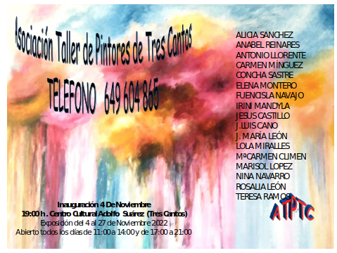Nuestro compañero Antonio Llorente nos invita a la inauguración de la exposición de la Asociación Taller de Pintores de Tres Cantos en el Centro Cultural Adolfo Suarez de Tres Cantos.