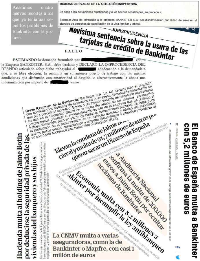 En el anterior número de El_Espejo.es os informábamos de que Bankinter y su entorno han sido de los más sancionados y multados en los últimos años, y os adjuntamos unos cuantos titulares que podéis ver abajo, a los que añadimos cuatro nuevos.