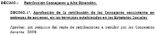 La retribución aprobada en 2009, sólo en acciones, es la siguiente: