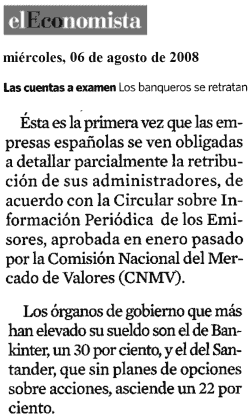 El diario “El Economista”, publicó el 6 de agosto esta noticia. Gracias a la nueva normativa de la CNMV podemos tener acceso “parcial” a la retribución de los administradores de las empresas.