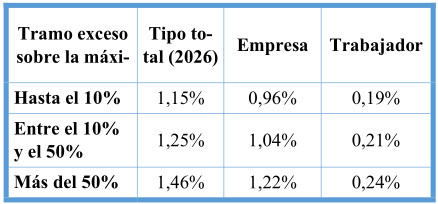 3. El último, la Cuota de Solidaridad, que se aplica sobre la base de cotización que están por encima de la cotización máxima. Sirven para que los que más ganan contribuyan en las prestaciones para todos. Los importes aplicados no son tampoco demasiado llamativos y en la mayoría de los casos se trata de algunos céntimos o pocos euros. Se aplica en base a esta tabla en 2026.