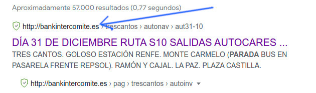 Normalmente los primeros resultados suelen ser páginas que pagan a Google para salir las primeras, suelen ser dos o tres enlaces... solo hay que fijarse en que la dirección que sale junto al texto es la nuestra, o sea bankintercomite.es. Normalmente utilizando este sistema encuentras lo que buscas siempre en la primera página de google, y así no hace falta que sepas dónde esta nuestra web o en qué mail guardaste un enlace a una noticia.
