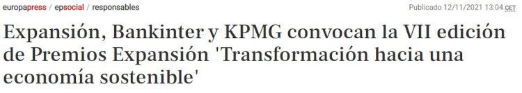 EXPANSIÓN, Bankinter y KPMG han abierto la convocatoria de su VII Edición de los Premios Expansión 'Transformación hacia una Economía Sostenible' con el fin de reconocer a las mejores empresas de España que lideran el camino hacia un futuro más sostenible y respetuoso con el medio ambiente.