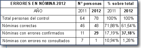 Al igual que el año pasado publicamos el informe final sobre las nóminas de 2011, este año lo hacemos con el resultado del control sobre 2012.
