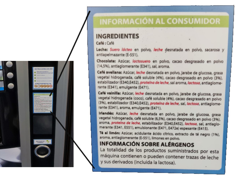 El indicativo de alérgenos debería estar presente en todas las máquinas de vending de los edificios del grupo Bankinter.