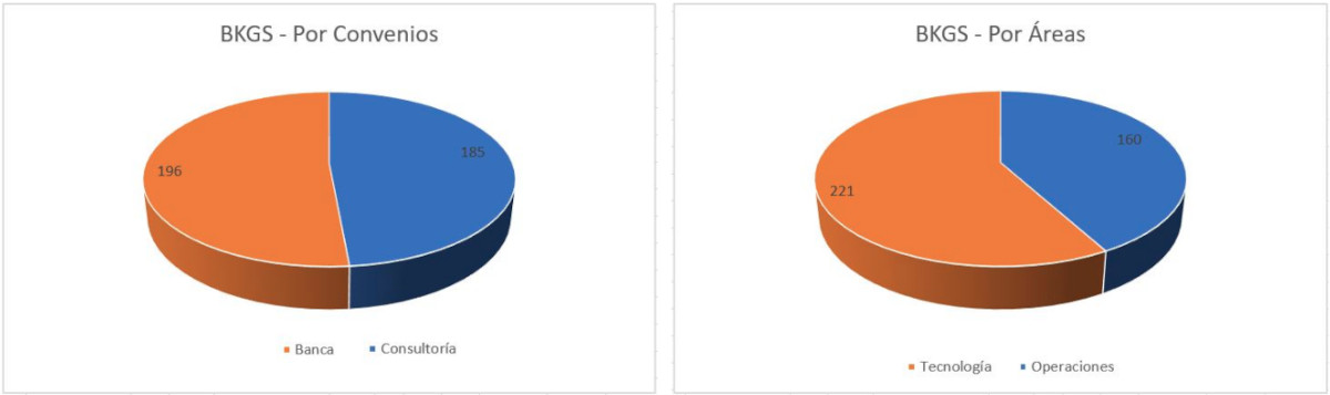 Hemos analizado la participación en BKGS, clasificada por convenios (Banca/Consultoría) y áreas (Operaciones/Tecnología), para averiguar si existía alguna tendencia significativa.