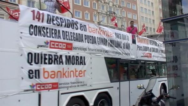 El "autobús protesta" contra la política de despidos de Bankinter ha sido un tremendo éxito. Miles de madrileños y turistas han leído, comentado y fotografiado, la quiebra moral en la que está sumida Bankinter.