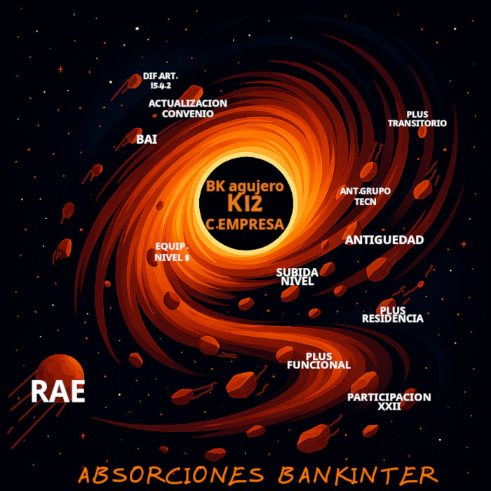 Si has comprobado que puedes cobrar RAE en abril es posible que tampoco lo recibas, y aquí entra la 'archifamosa' absorción del concepto K12 C.EMPRESA: ese agujero negro de nuestro salario que el banco controla tan bien. El concepto RAE que cobramos en abril de 2026 se trata de salario del año anterior, por lo que si llegaste a cobrar suficiente salario en el concepto K12 C.EMPRESA en 2025 Bankinter NO te pagará el RAE de abril. Te lo absorberá en diferido (Puede que no te absorba solo parte de lo que te corresponda en el concepto RAE si no has cobrado suficiente C.EMPRESA en 2025)